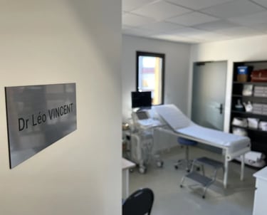 Installé depuis 2023 dans le Var à Six Fours, il pratique également l'échographie et les infiltrations échoguidées.